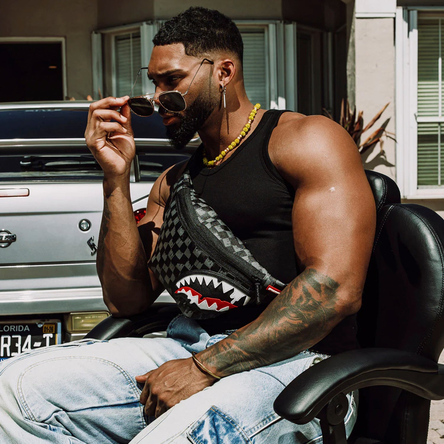 Cangurera Sprayground unisex, diseño 'Dripping Sharks In Paris'. Estilo urbano y funcionalidad para llevar lo esencial con actitud.